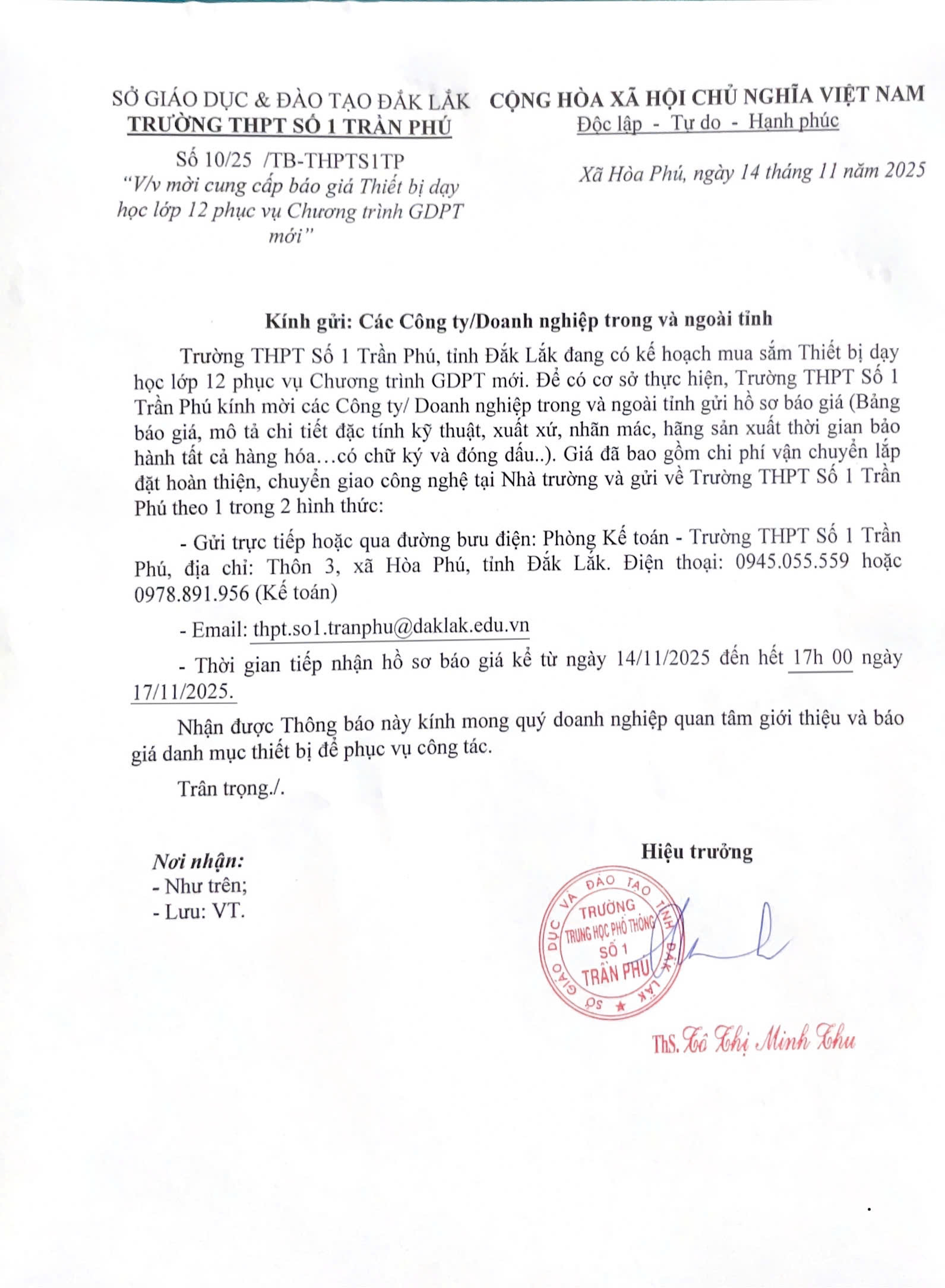 3. Mời cung cấp báo giá thiết bị dạy học lớp 12